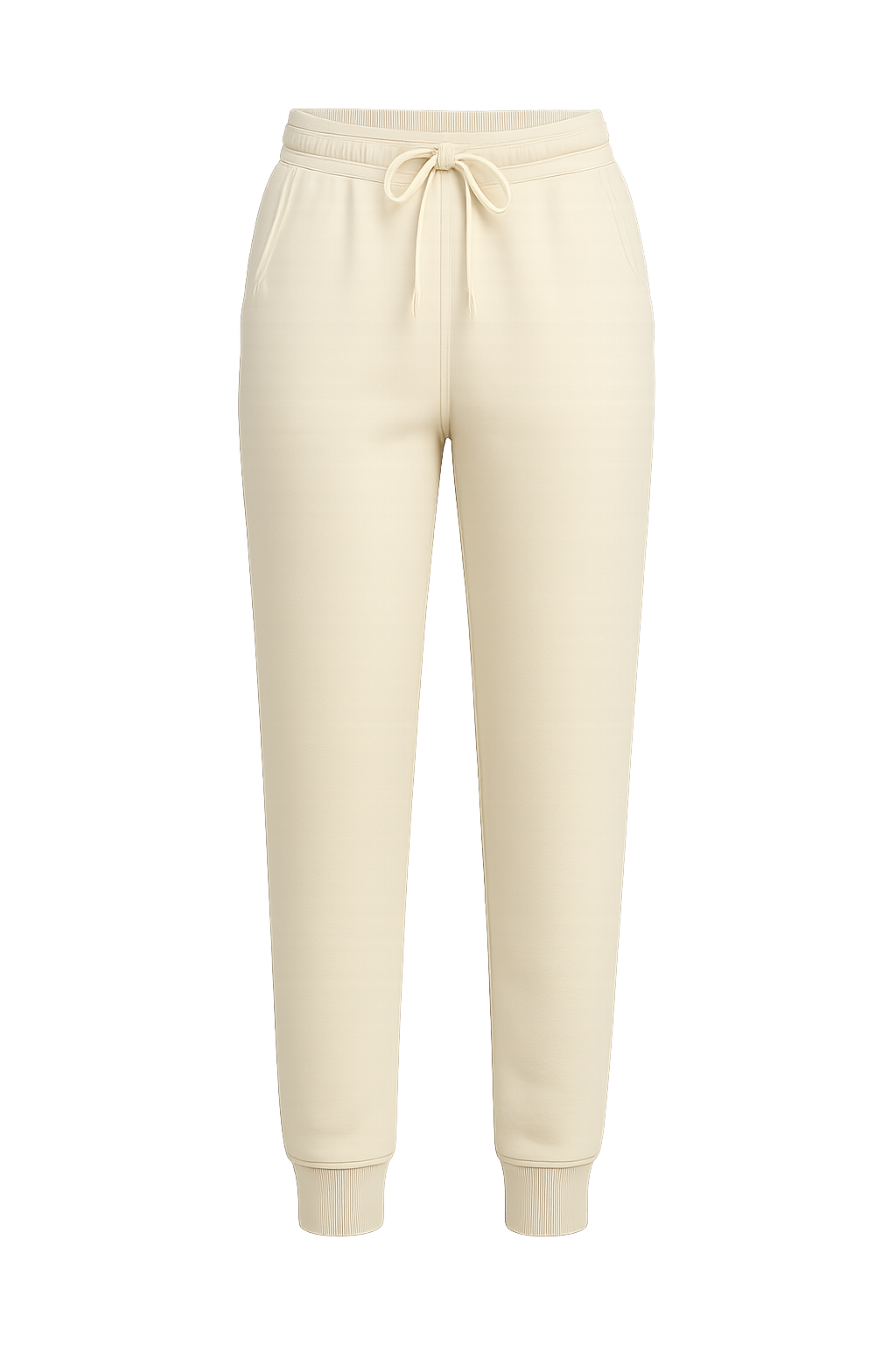 Damskie spodnie dresowe do nadruku Velvoria Lounge Pants – ecru to wygodny model typu loungewear w jasnej, neutralnej tonacji. Naturalny, lekko kremowy odcień dobrze wygląda z nadrukami w kolorach firmowych, zachowując przy tym miękki, casualowy charakter.