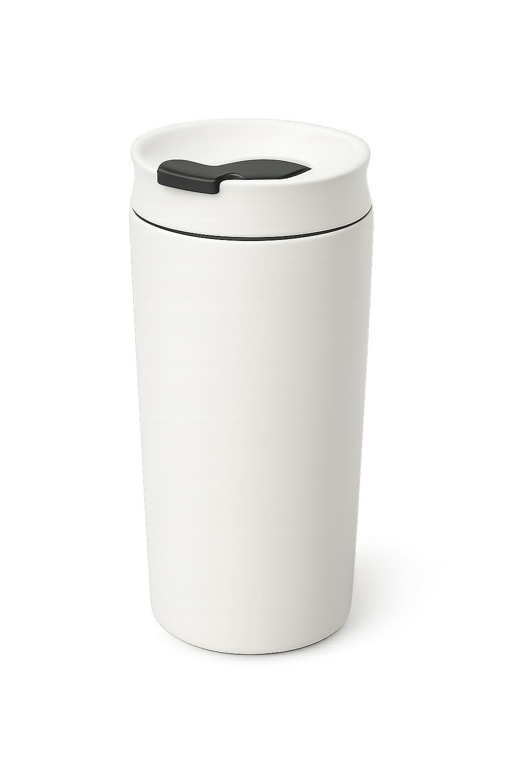 Kubek termiczny do nadruku Velvoria Travel Mug – biały 400 ml to stalowy kubek z podwójną ścianką i jasnym, matowym wykończeniem. Biały korpus mocno kontrastuje z nadrukiem, dzięki czemu logotyp pozostaje czytelny z dużej odległości.
