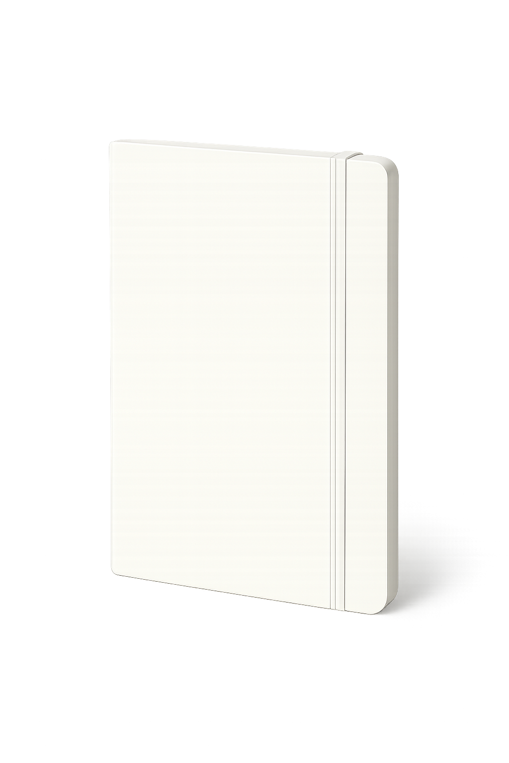 Notes do nadruku Velvoria Soft Notebook A5 – biały, gładki to klasyczny notes w formacie A5 z jasną, miękką okładką. Biała okładka stanowi czytelne tło dla logotypów i grafik, a gładkie kartki w środku sprawdzą się jako przestrzeń na notatki, szkice lub planery.